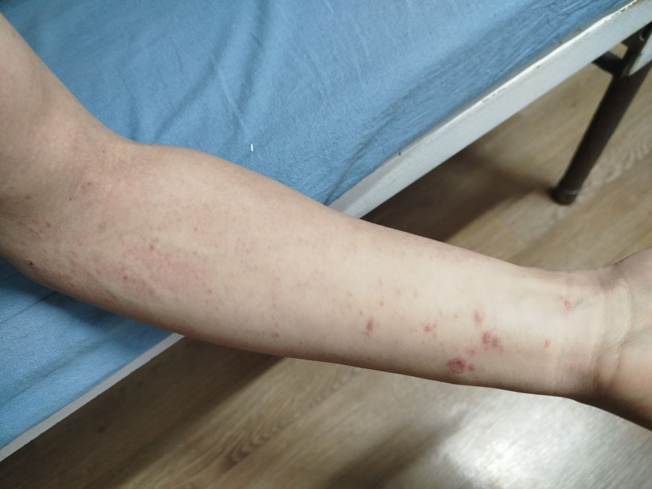Since childhood, the affected woman has repeatedly suffered from severe unpleasant painful and itchy reddenings of the skin, and in this context, received various diagnoses such as eczema, neurodermatitis, allergy to wool / dyes / chlorine / sun, … Immediately after she was proposed to, a particularly strong final conflict resolved phase with strong symptoms followed.